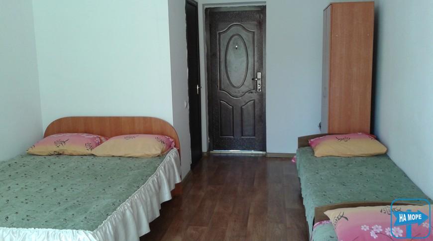 Розміщуємо гостей у 3-х поверховому готелі у 2,3,4 та 6-ти місцевих номерах категорій "комфорт" та "прості". Велика літня тераса на другому поверсі та закритий майданчик на першому поверсі. Готель приймає з домашніми тваринами. "Комфорт": II та III поверхи. 2-, 3-місні номери з балконами. 4-місні з балконами та без. 6-ти місний 2-х кімнатний з балконом. У кожному номері гаряча та холодна вода, кабельне ТБ, холодильник, кондиціонер, електрочайник, Wi-Fi зона. У кожному номері двоспальне ліжко та односпальні ліжка в залежності від кількості місць у номері.