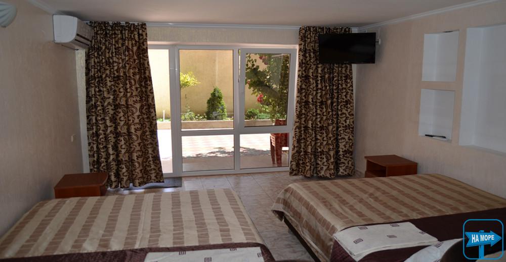 Пансионат расположен в центральной части курорта, поблизости от всех важных элементов инфраструктуры: магазины, заведения общепита, рынок, аптеки, дискотеки.